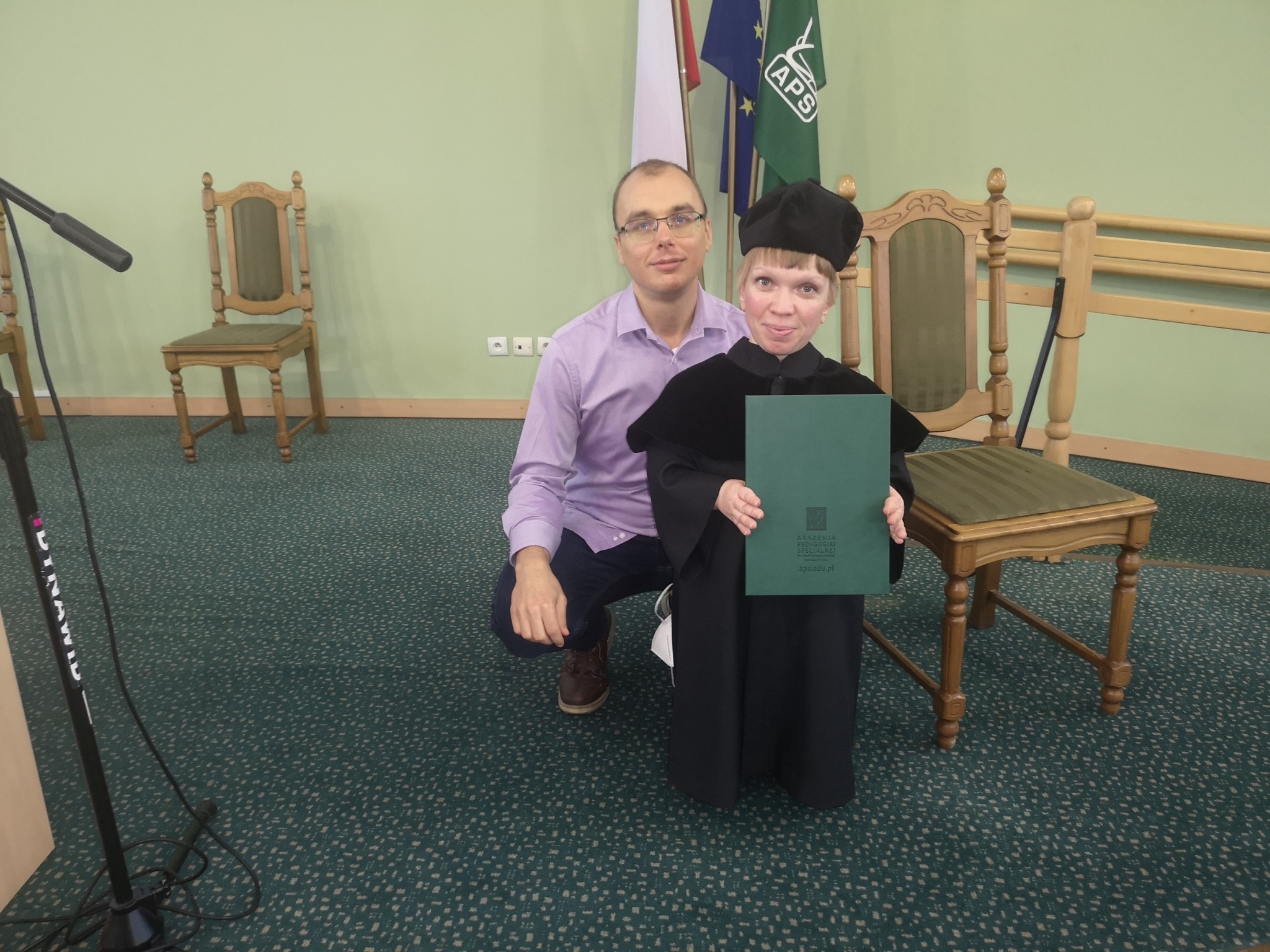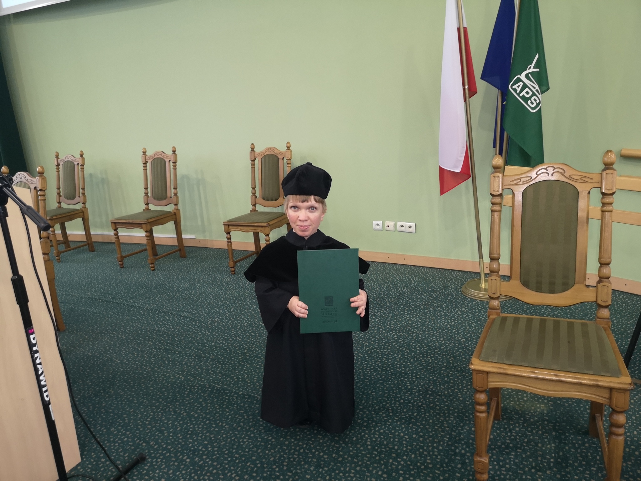 Pandemia COVID-19 zmieniła zasadniczo niemal wszystkie obszary naszego życia. Podczas lockdownu zamknięte zostały m.in. szkoły, uczelnie wyższe, zaś wszystkie zajęcia przeniesiono do Internetu. W takich okolicznościach finalizowałam swoją pracę doktorską, której tytuł brzmi: "Osoba z niskorosłością wobec zadań rozwojowych człowieka dorosłego - perspektywa normalizacyjno- integracyjna". Praca ta jest próbą odpowiedzi na wyzwanie, jakim dla współczesnego świata nauki są choroby, które wiążą się z niskim wzrostem. Te schorzenia są już w dużym stopniu poznane przez współczesną medycynę, jednakże słabo zbadane przez nauki pedagogiczne. Obrona mojej pracy doktorskiej odbyła się na Akademii Pedagogiki Specjalnej dnia 2 grudnia 2020 w formie zdalnej. Uzyskałam wówczas stopień doktora w dziedzinie nauk społecznych w dyscyplinie pedagogiki. Po długiej przerwie spowodowanej pandemią, w murach Auli Akademii Pedagogiki Specjalnej w dniu 22 grudnia 2021 roku podczas posiedzenia Senatu odbyły się uroczyste promocje doktorskie i habilitacyjne. W tym czasie złożyłam ślubowanie oraz odebrałam dyplom potwierdzający uzyskanie stopnia doktora.