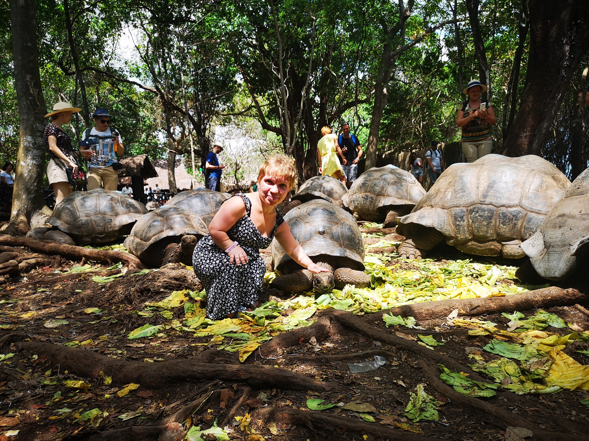 Na wyspę Prisan Island, zwaną przez miejscowych Changuu, dotarłam z pozostałymi uczestnikami wycieczki łódką. Zauważyłam, że w miarę jak łódź oddalała się od przystani i zbliżała do wyspy, woda oceanu przybierała coraz bardziej turkusowo-zielonkawy, piękny kolor. Wyspa ta należy do archipelagu Zanzibar i nazywana jest inaczej wyspą więzienną lub kwarantanny. Jej właściciel, brytyjski premier, postanowił w roku 1893 wybudować tam więzienie. Pomimo tego, że prace budowlane zostały zakończone, więźniowie nigdy tu nie przybyli - cóż za kontrast. Z jednej strony wyspa piękna, wręcz rajska, z drugiej miejsce przestępców i zbrodniarzy. Ostatecznie więzienie posłużyło jako ośrodek kwarantanny dla chorych na żółtą febrę. Obecne wyspę Prison Island odwiedzają turyści. Największą atrakcją tej wyspy są kilkusetletnie ogromne żółwie Aldabry przywiezione prawdopodobnie z Szeszeli przez Brytyjczyków na początku XX wieku. W związku z tym Zanzibar nazywany jest także "domem żółwia". Okazało się, że początkowo sprowadzono na wyspę tylko cztery osobniki. Panujące tu warunki sprzyjały zwiększaniu ich populacji. Żółwie rozmnażały się intensywnie i jeszcze w latach 50-tych ubiegłego wieku spacerowały na wolności. Zaczęły one jednak padać łupem złodziei, dlatego zdecydowano w latach 90-tych postawić ogrodzenie i pilnie ich strzec. Bilet wstępu kosztuje 4$. Pomimo zakazu karmienia zwierząt, to i tak swobodnie można podawać im liście sałaty lub szpinaku, które są obok położone. Żółwie olbrzymie to jedne z największych przedstawicieli tego gatunku na świecie i są długowieczne. Żyją średnio ponad 100 lat, czasem nawet ponad 200. Dorosły osobnik męski waży średnio 250 kg, samice są zaś nieco mniejsze. Każde zwierzę ma na pancerzu napisany numer, oznaczający ilość przeżytych lat. Żółwie sięgały mi do pasa lub nawet powyżej. Czułam się jak Calineczka w krainie olbrzymów. Karmiąc je musiałam bardzo uważać na swoje palce, ponieważ żółwie olbrzymie mają bardzo silne, rogowe szczęki. Oprócz tych gigantów na wyspie była wyjątkowa roślinność. Zachwycił mnie przepiękny, rozpościerający się widok na lazurową wodę. Pobyt na Prison Island to niesamowite przeżycie, które niewątpliwie zostanie w mojej pamięci na bardzo długo. Wracając z wyspy podziwiałam zapierający dech w piersiach widok na stolicę Zanzibaru, zatokę i archipelag. Po 20 minutach ponownie dopłyneliśmy do Stone Town. Nie zapomnieliśmy oczywiście o napiwku dla naszego "kapitana", ponieważ byliśmy bardzo zadowoleni tej z wycieczki.